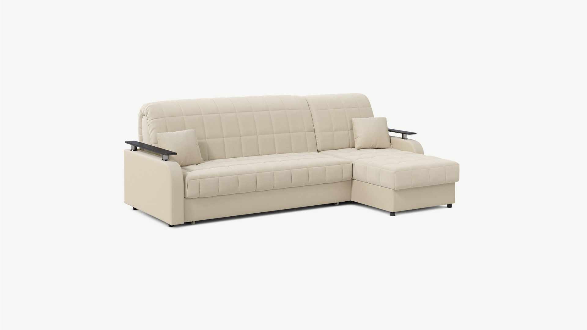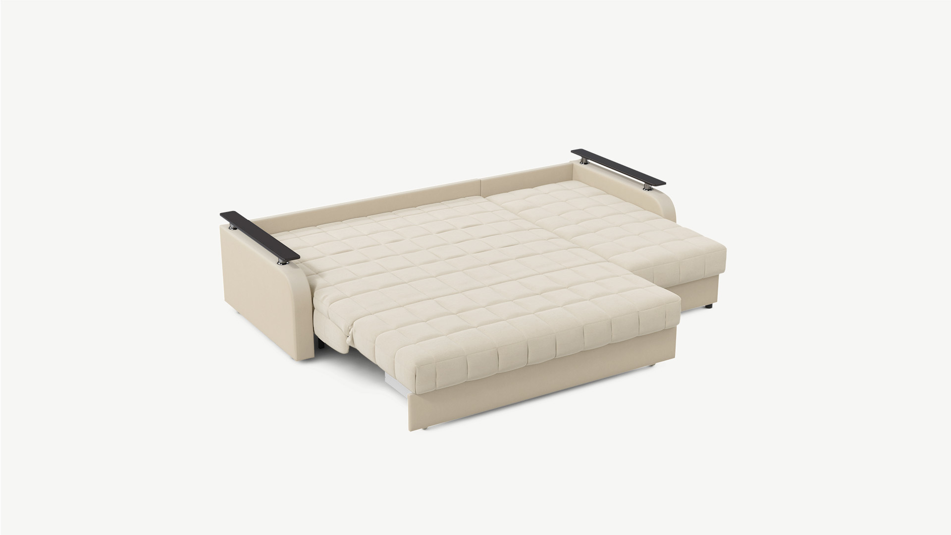 Оттоманка обеспечивает дополнительное пространство для отдыха, благодаря которому Вы можете располагаться с максимальным комфортом, вытянув ноги. Под данной секцией расположен вместительный бельевой короб.
