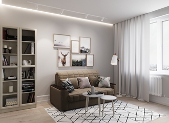 Спинка, выполненная в обивочной ткани, позволяет ставить диван в центре комнаты и зонировать пространство.