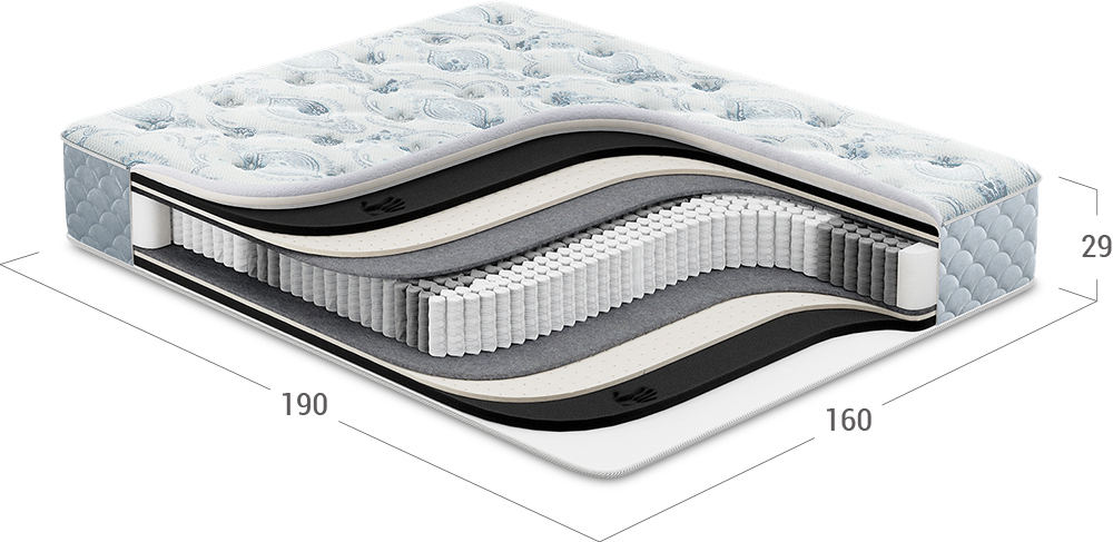 Оказывает надежную поддержку и равномерно распределяет нагрузку на поверхности спального места, подстраивается под контуры тела и помогает сохранять его правильное положение на протяжении всего времени отдыха.
