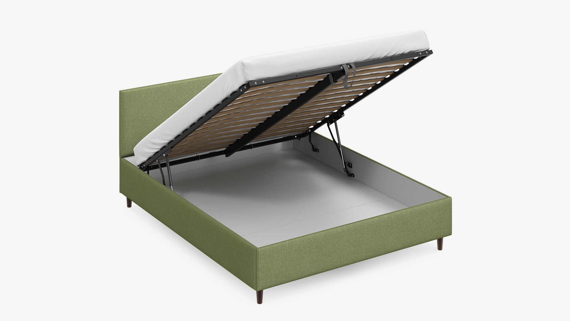 • Скрытая под основанием вместительная емкость без внутренних перегородок позволяет использовать всю площадь подкроватного пространства для хранения вещей.