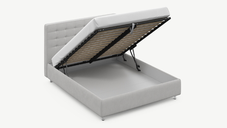 • Скрытая под основанием вместительная емкость без внутренних перегородок позволяет использовать всю площадь подкроватного пространства для хранения вещей.
