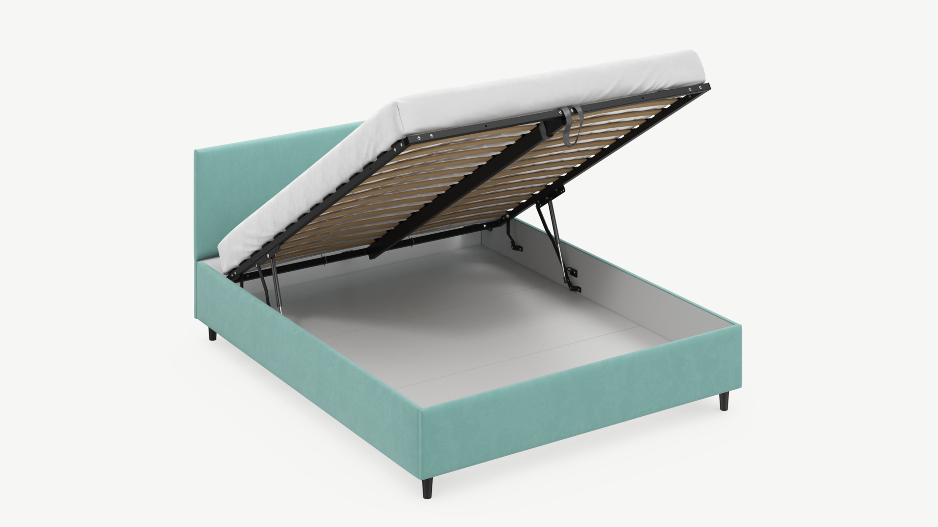 • Скрытая под основанием вместительная емкость без внутренних перегородок позволяет использовать всю площадь подкроватного пространства для хранения вещей.