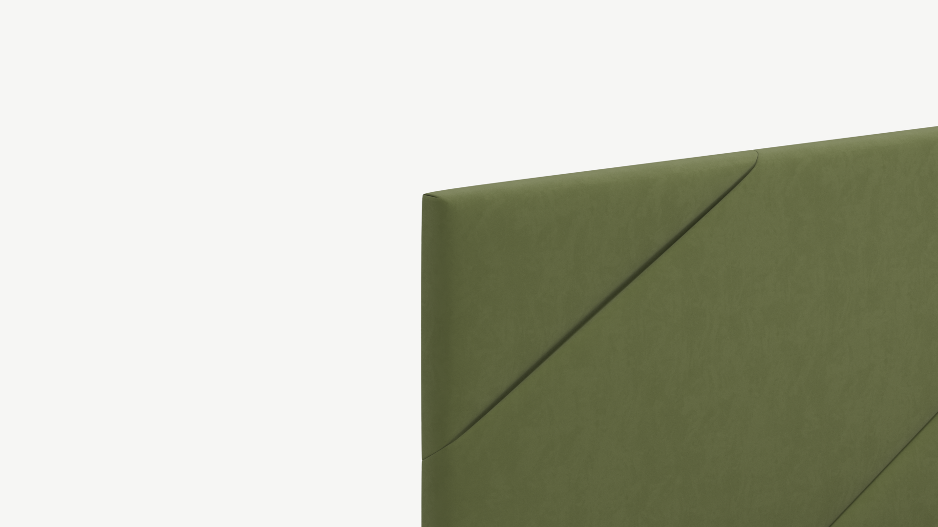 Элегантным и практичным акцентом служат скрытые карманы, расположенные по его углам. Лаконичные формы объемных царг создают единый гармоничный образ и фокусируют внимание на центральном текстурном элементе кровати.