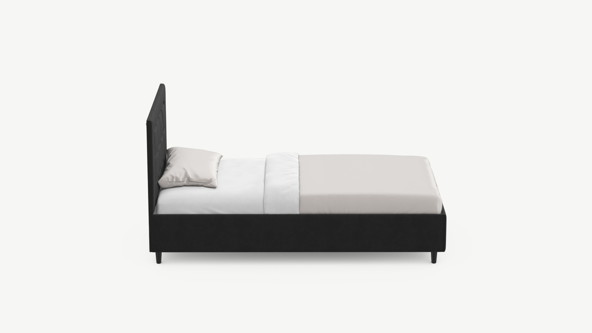 Стежка помещена в центр изголовья и обрамлена, словно картина. Объемные царги завершают цельную фигуру кровати и становятся гармоничным дополнением ее образа.