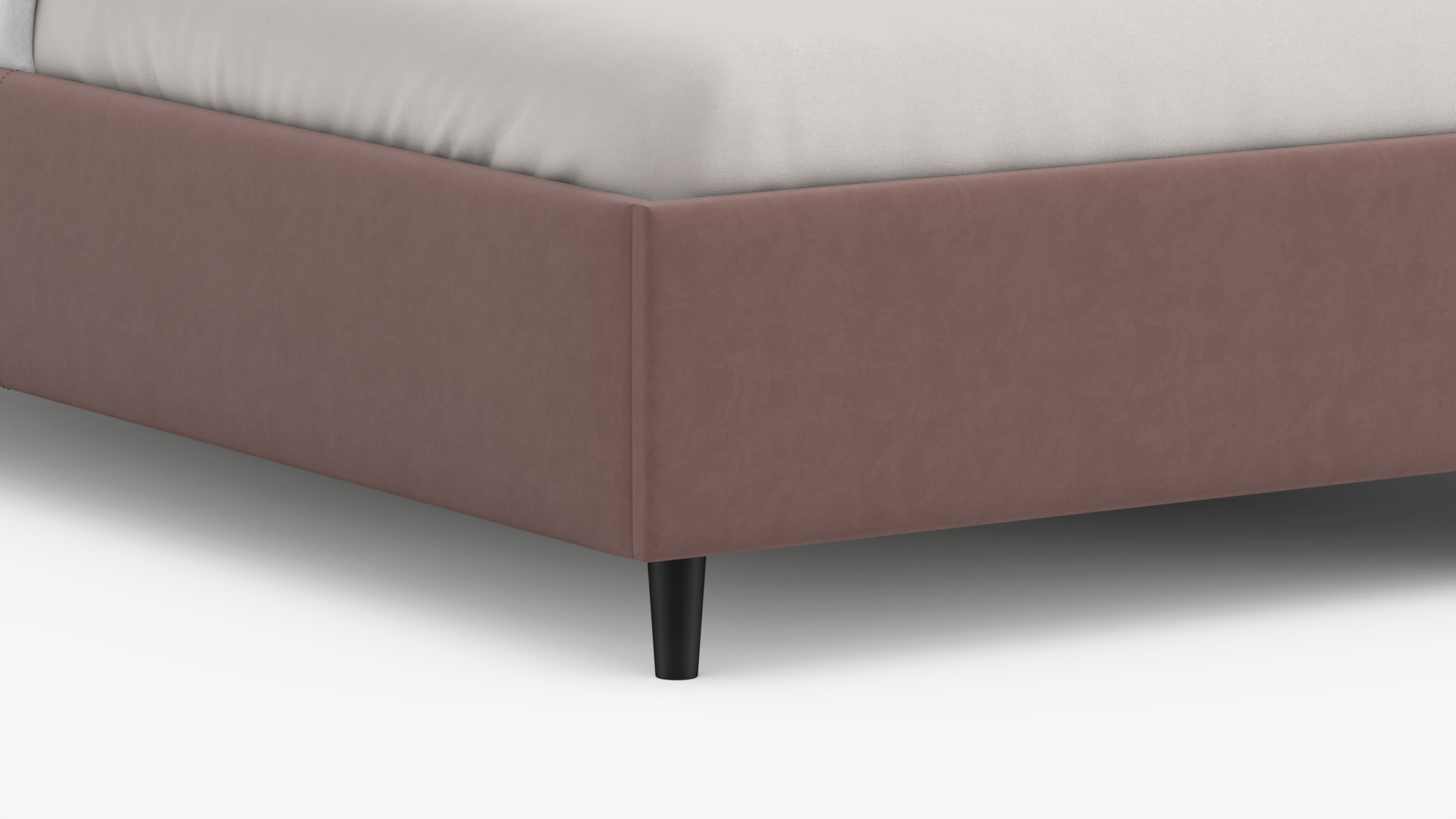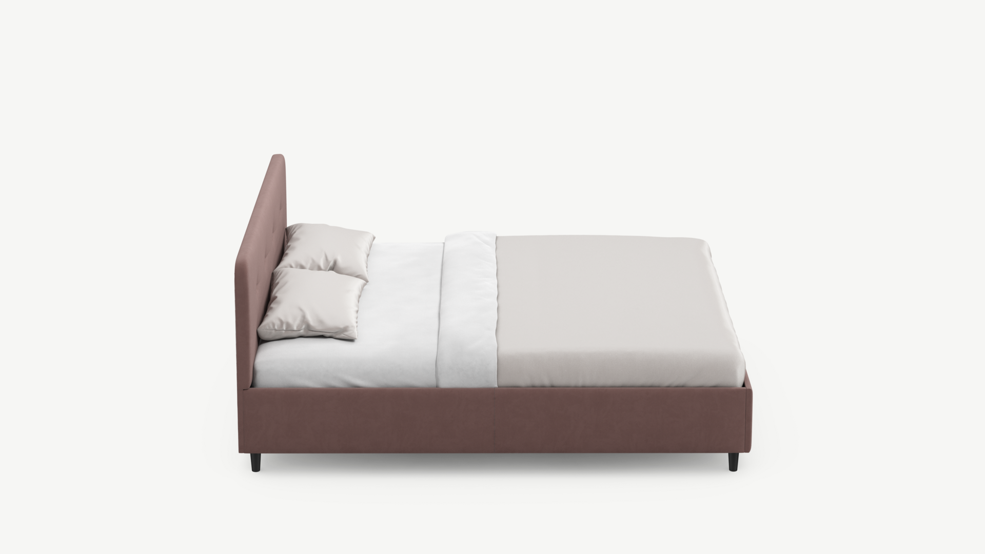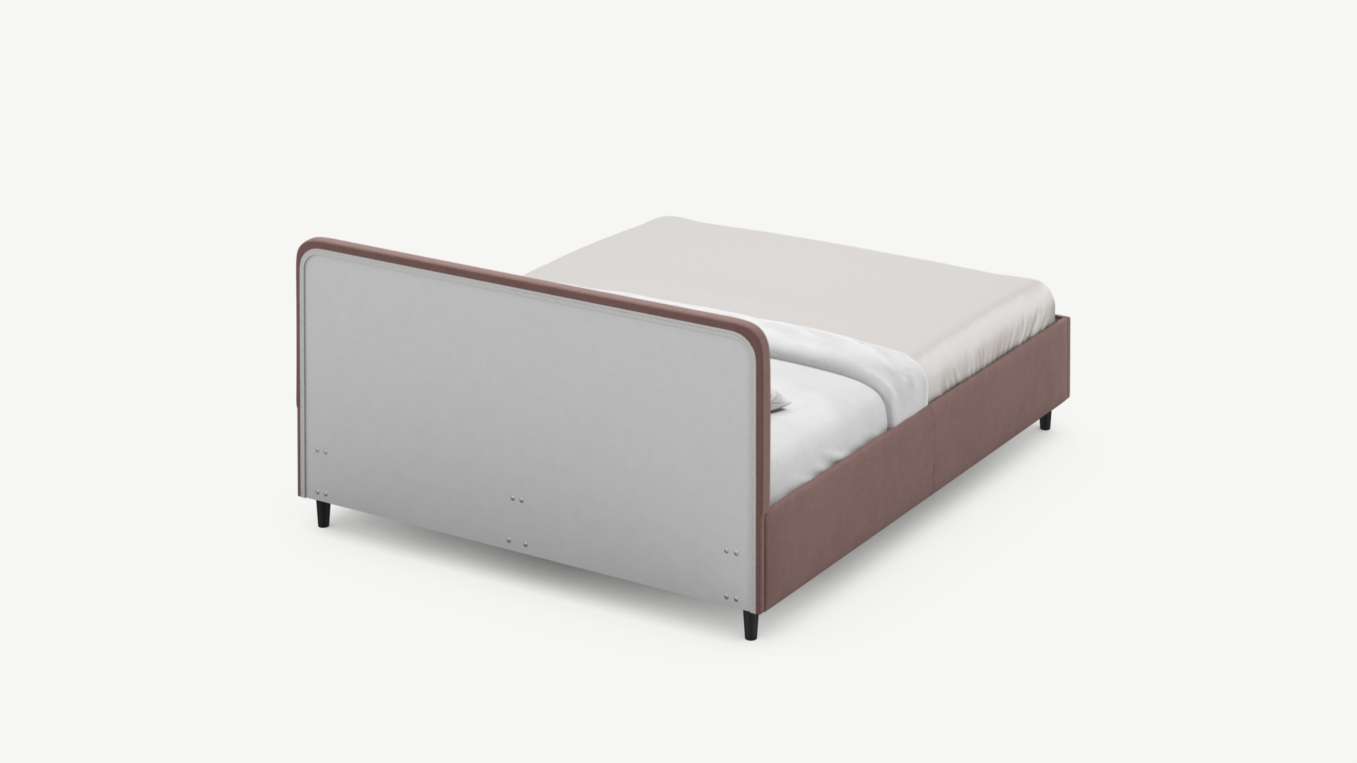 Царга, задающая пропорции, благодаря гладкости своей фактуры подчеркивает центральный элемент декора. Высокие опоры приподнимают фигуру кровати над полом и добавляют её образу визуальной легкости.