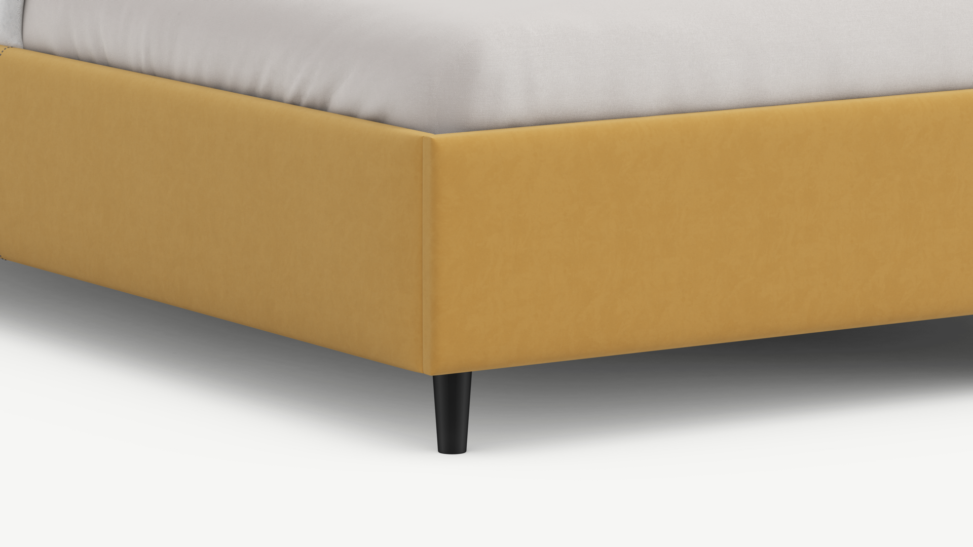 Царга, задающая пропорции, благодаря гладкости своей фактуры подчеркивает центральный элемент декора. Высокие опоры приподнимают фигуру кровати над полом и добавляют её образу визуальной легкости.