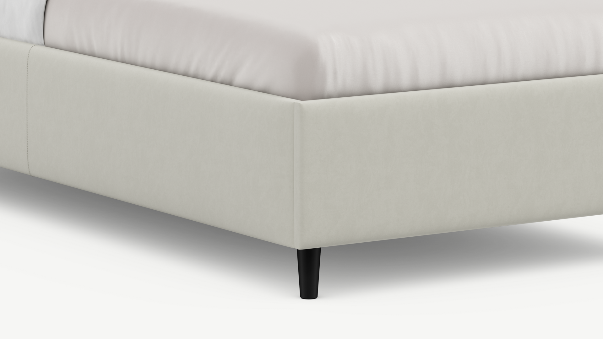 Царга, задающая пропорции, благодаря гладкости своей фактуры подчеркивает центральный элемент декора. Высокие опоры приподнимают фигуру кровати над полом и добавляют её образу визуальной легкости.