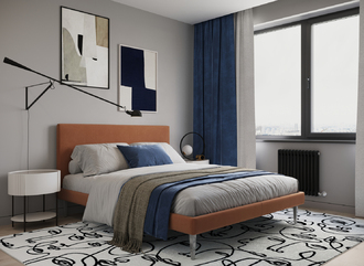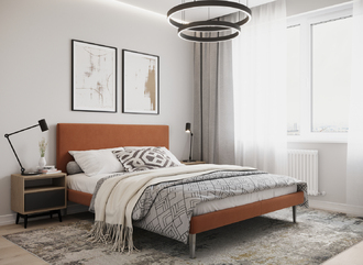 Кровать MOON FAMILY 1256 демонстрирует безупречный баланс изящных пропорций. Лаконичное изголовье, узкие царги и высокие опоры создают эффектный образ, привносящий в пространство спальни стильный и яркий акцент.