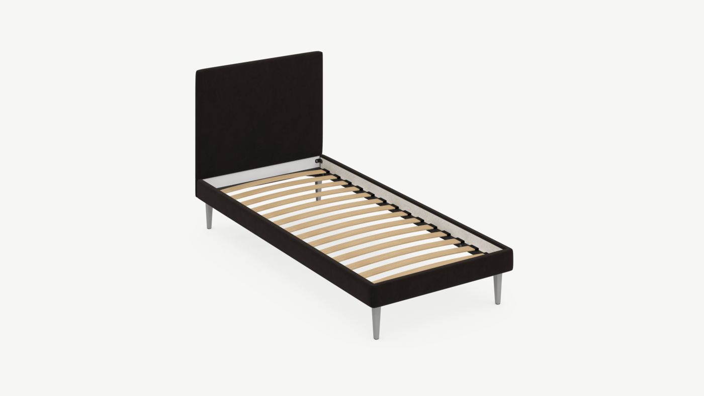 Кровать MOON FAMILY 1256 демонстрирует безупречный баланс изящных пропорций. Лаконичное изголовье, узкие царги и высокие опоры создают эффектный образ, привносящий в пространство спальни стильный и яркий акцент.