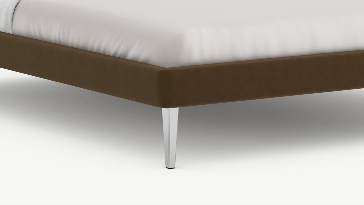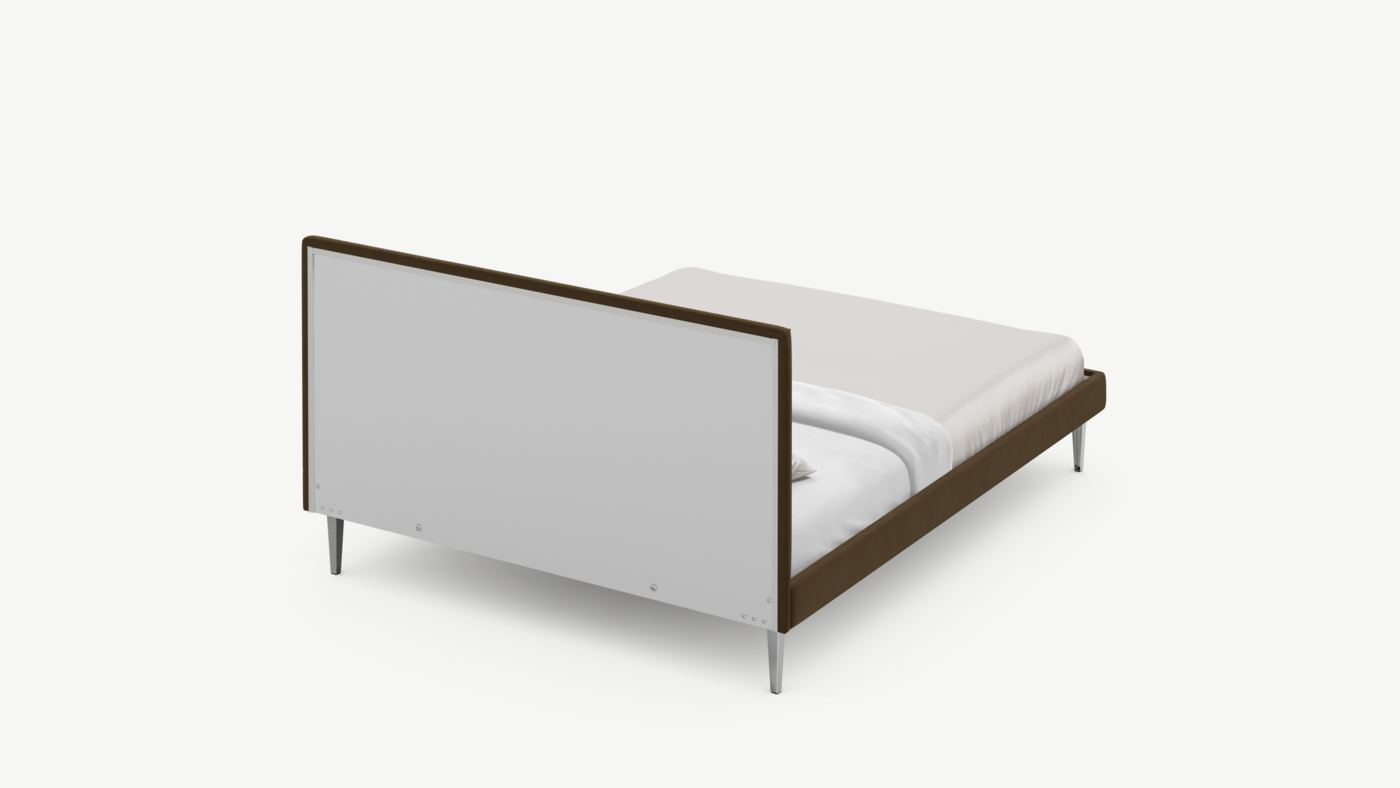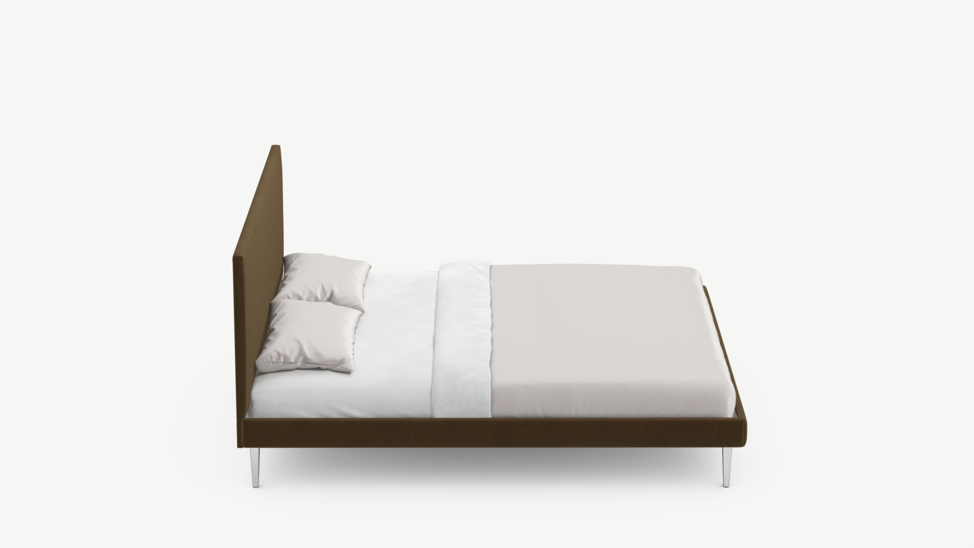 Кровать MOON FAMILY 1256 демонстрирует безупречный баланс изящных пропорций. Лаконичное изголовье, узкие царги и высокие опоры создают эффектный образ, привносящий в пространство спальни стильный и яркий акцент.