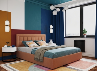 Стежка помещена в центр изголовья и обрамлена, словно картина. Объемные царги становятся гармоничным дополнением образа и завершают цельную фигуру кровати.