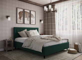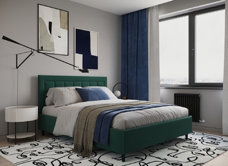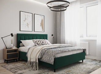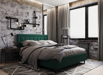 Стежка помещена в центр изголовья и обрамлена, словно картина. Объемные царги завершают цельную фигуру кровати и становятся гармоничным дополнением ее образа.
