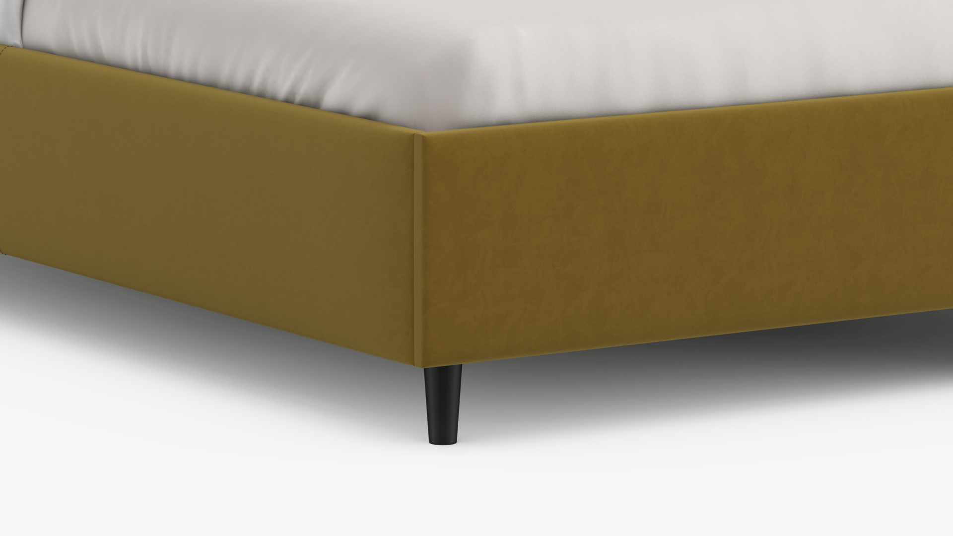 Стежка помещена в центр изголовья и обрамлена, словно картина. Объемные царги завершают цельную фигуру кровати и становятся гармоничным дополнением ее образа.