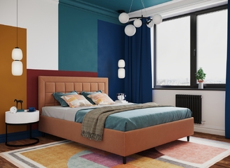 Стежка помещена в центр изголовья и обрамлена, словно картина. Объемные царги завершают цельную фигуру кровати и становятся гармоничным дополнением ее образа.