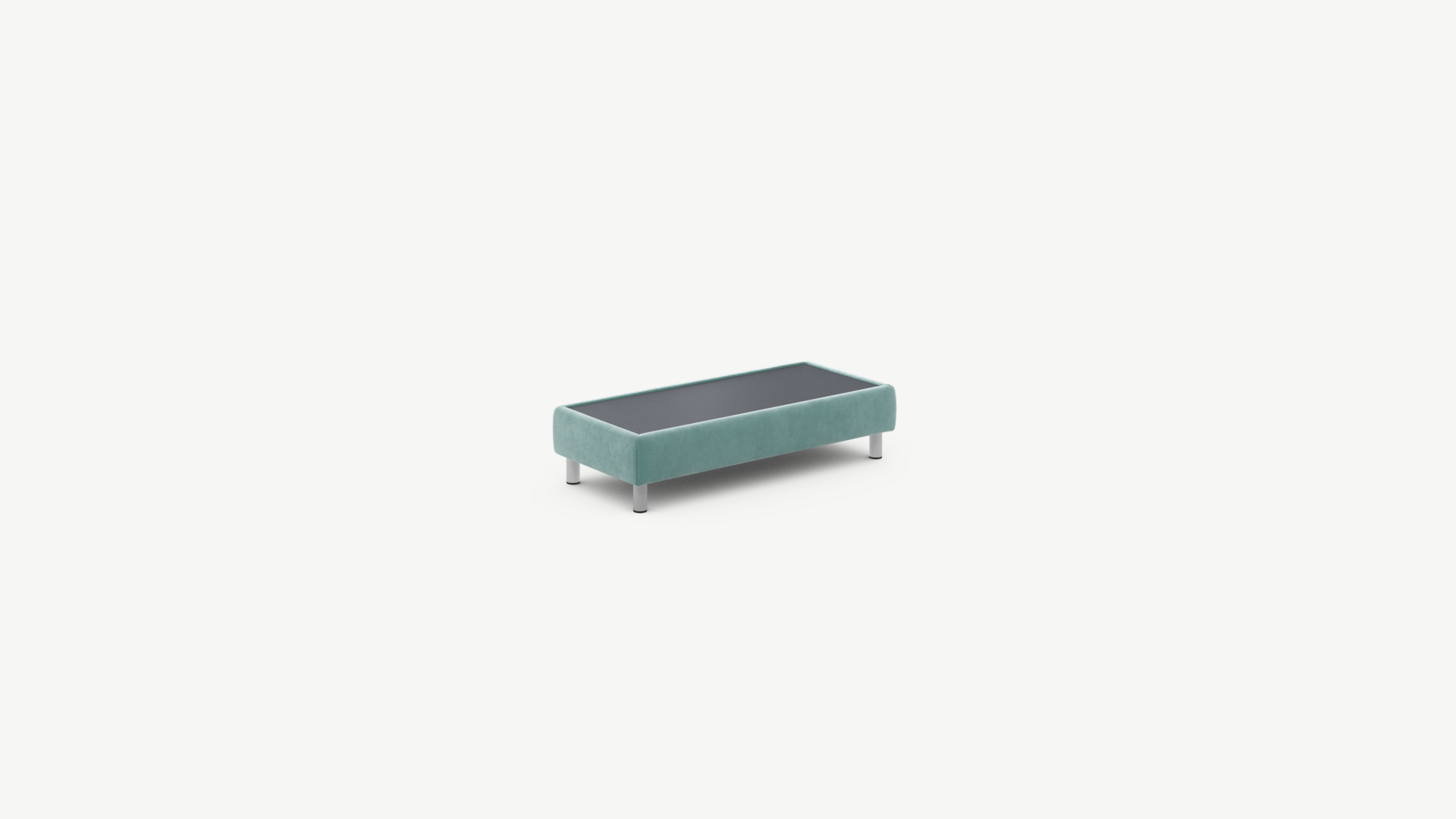 Дизайн банкетки MOON 166 отличает популярная простая геометрия, высокие цилиндрические опоры и лаконичность.
