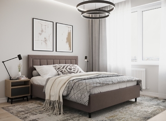 Фактура обивочного материала подбирается дизайнерами с учетом технологических и стилевых особенностей кровати.