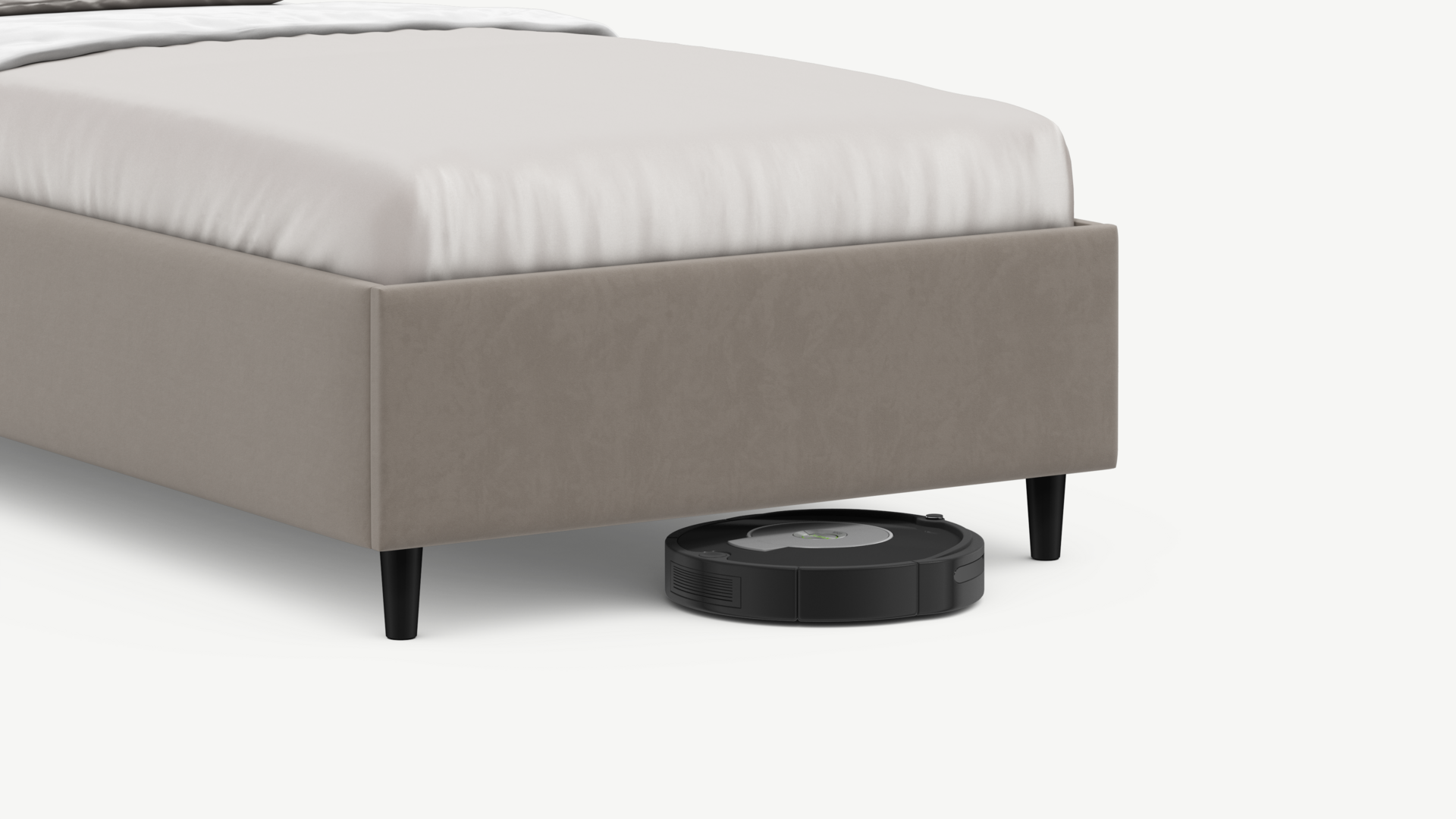 Благодаря высоким опорам под кроватью проходит робот-пылесос и легко проводится влажная уборка, что обеспечивает чистоту и порядок в доме.