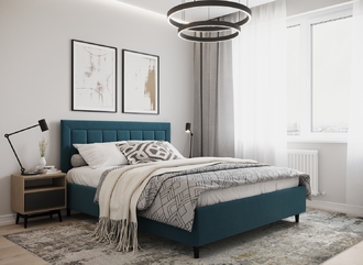 Стежка помещена в центр изголовья и обрамлена, словно картина. Объемные царги завершают цельную фигуру кровати и становятся гармоничным дополнением ее образа.