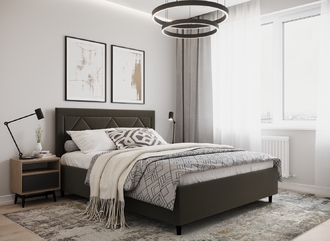 Фактура обивочного материала подбирается дизайнерами с учетом технологических и стилевых особенностей кровати.