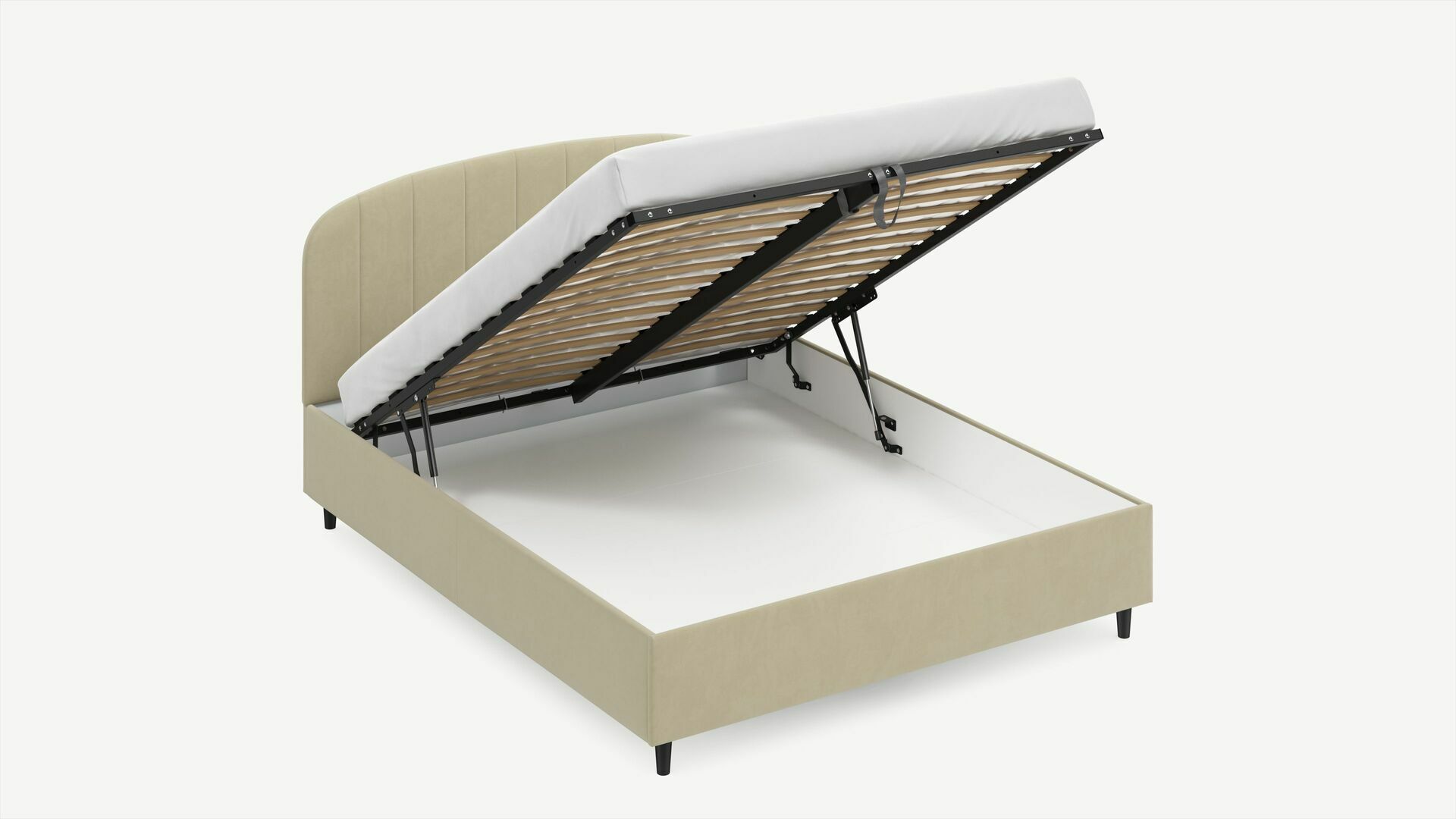• Скрытая под основанием вместительная емкость без внутренних перегородок позволяет использовать всю площадь подкроватного пространства для хранения вещей.