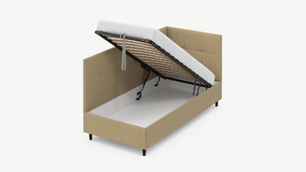 • Скрытая под основанием вместительная емкость без внутренних перегородок позволяет использовать всю площадь подкроватного пространства для хранения вещей.