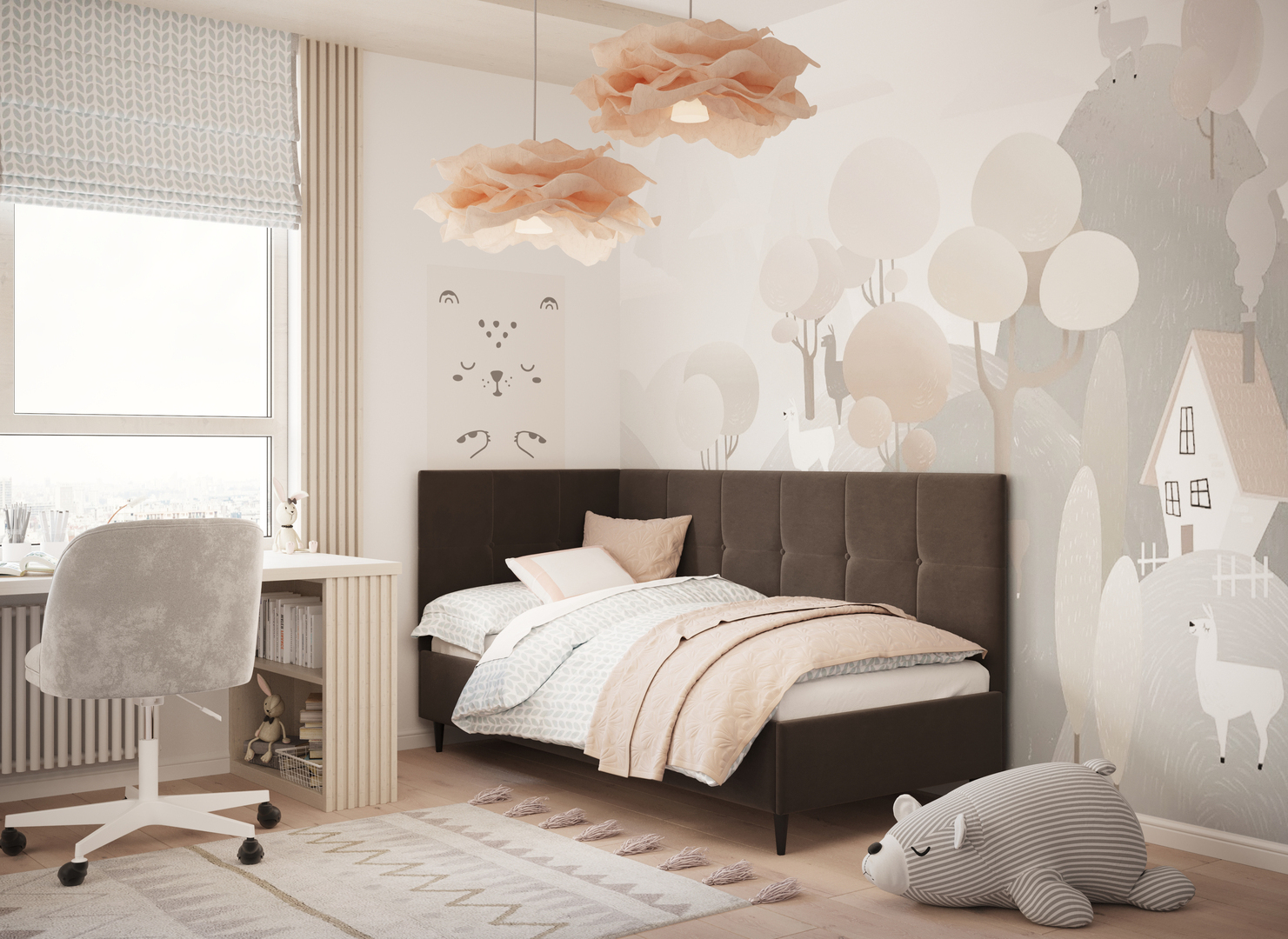 В подростковой комнате эта кровать станет стильным акцентом окружающего интерьера и возьмет на себя роль удобной кушетки для друзей, зашедших в гости.