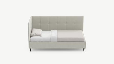 Угловая односпальная кровать MOON FAMILY 1261 с мягкой спинкой и изголовьем создаст в Вашей спальне ощущение уюта. Крупная квадратная стежка привносит в интерьер графических акцентов, а вставка из пуговиц наполняет пространство ощущением домашнего тепла.