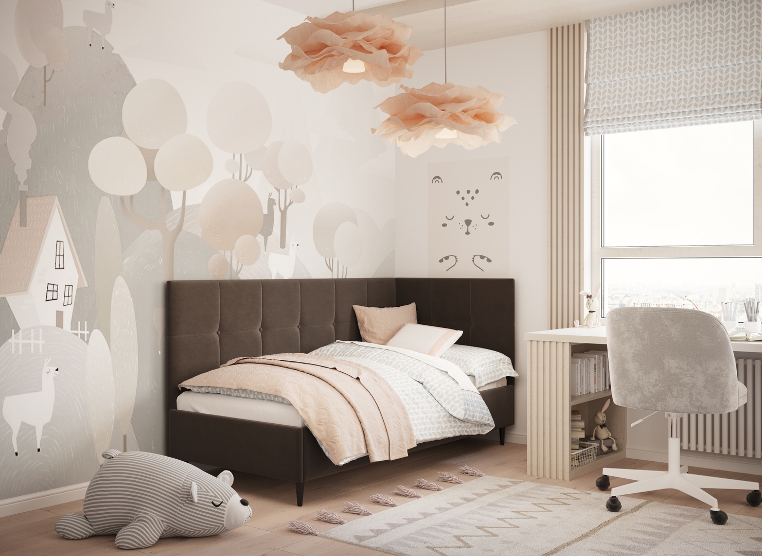 В подростковой комнате эта кровать станет стильным акцентом окружающего интерьера и возьмет на себя роль удобной кушетки для друзей, зашедших в гости.