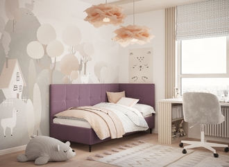 Угловая односпальная кровать MOON FAMILY 1261 с мягкой спинкой и изголовьем создаст в Вашей спальне ощущение уюта. Крупная квадратная стежка привносит в интерьер графических акцентов, а вставка из пуговиц наполняет пространство ощущением домашнего тепла.