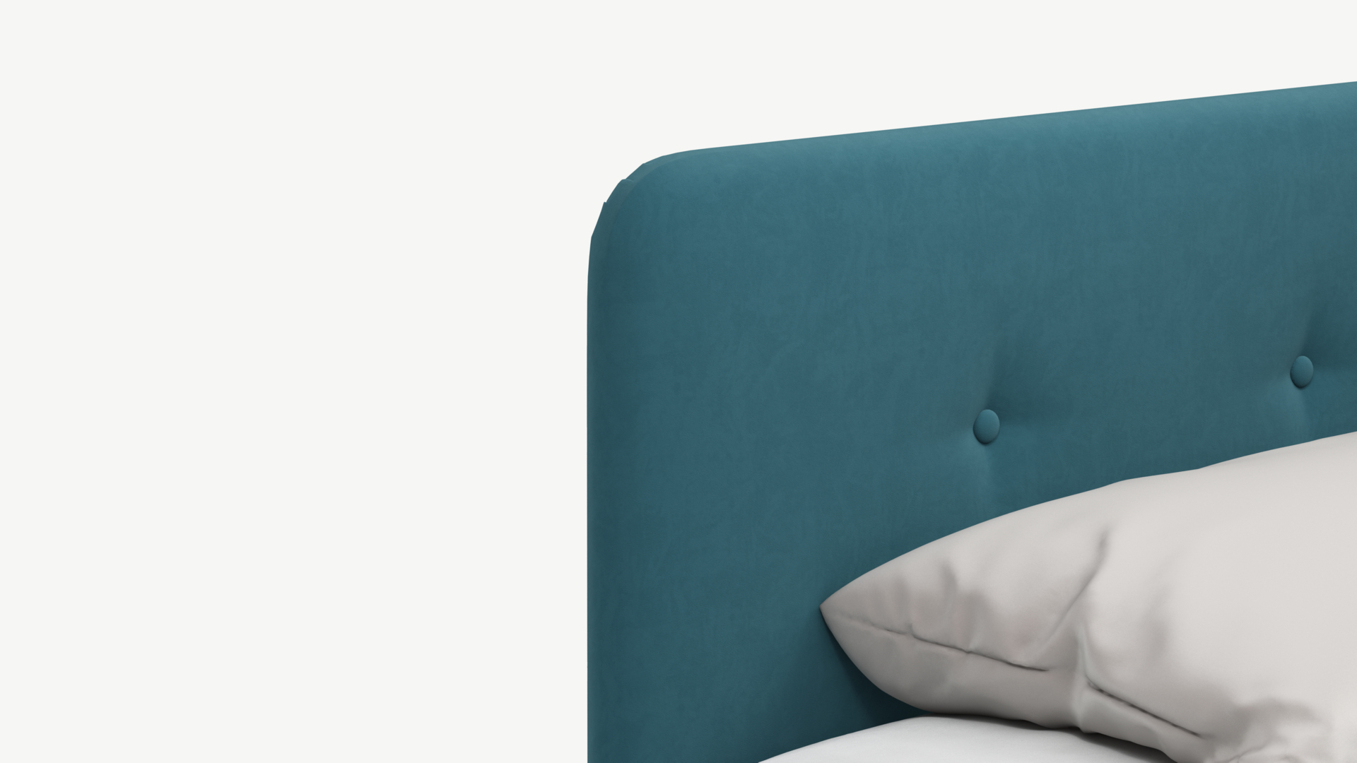 Угловая односпальная кровать MOON FAMILY 1253 с мягкой спинкой и изголовьем обладает округлыми формами, привносящими в интерьер нотки нежности. Изголовье, украшенное пуговицами, добавляет окружающему пространству шарм и уют. Высокие опоры придают кровати визуальной легкости, а также обеспечивают удобство во время уборки.