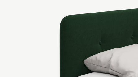 Угловая односпальная кровать MOON FAMILY 1253 с мягкой спинкой и изголовьем обладает округлыми формами, привносящими в интерьер нотки нежности. Изголовье, украшенное пуговицами, добавляет окружающему пространству шарм и уют. Высокие опоры придают кровати визуальной легкости, а также обеспечивают удобство во время уборки.
