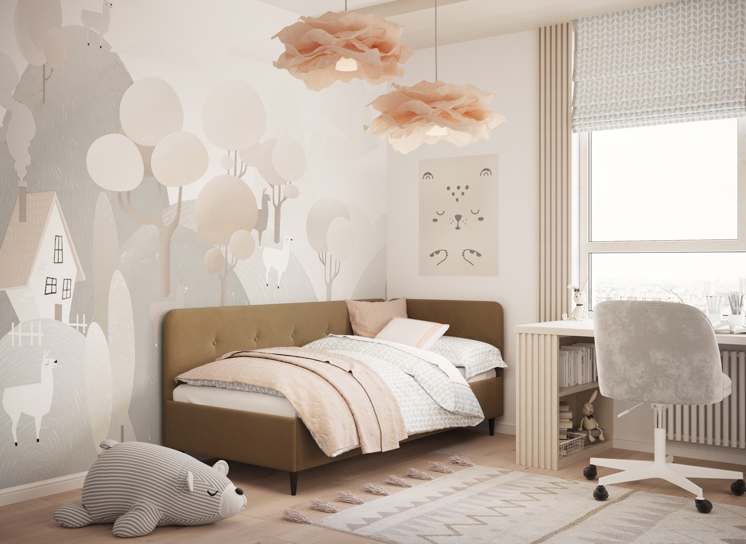В подростковой комнате эта кровать станет стильным акцентом окружающего интерьера и возьмет на себя роль удобной кушетки для друзей, зашедших в гости.