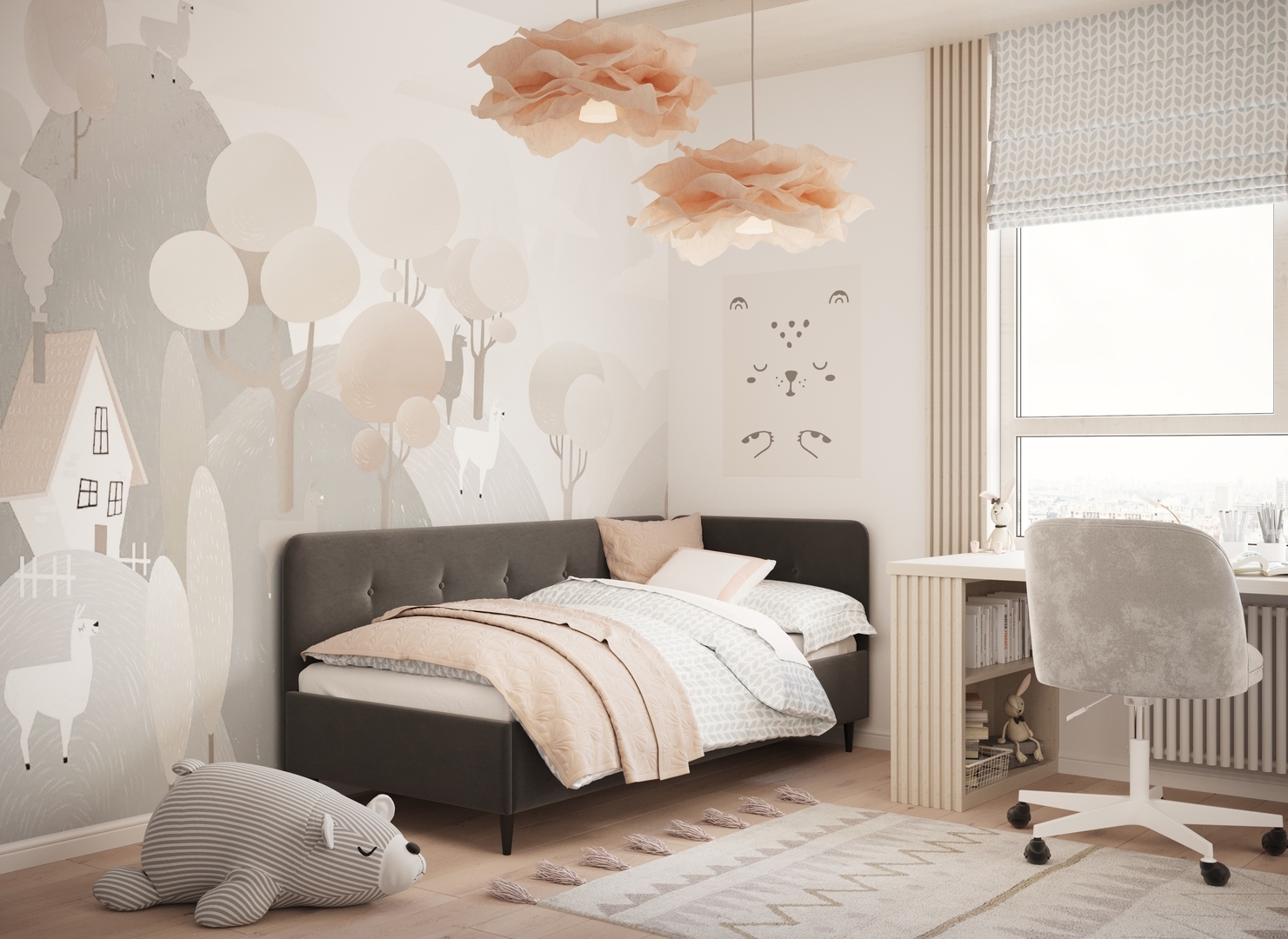 В подростковой комнате эта кровать станет стильным акцентом окружающего интерьера и возьмет на себя роль удобной кушетки для друзей, зашедших в гости.