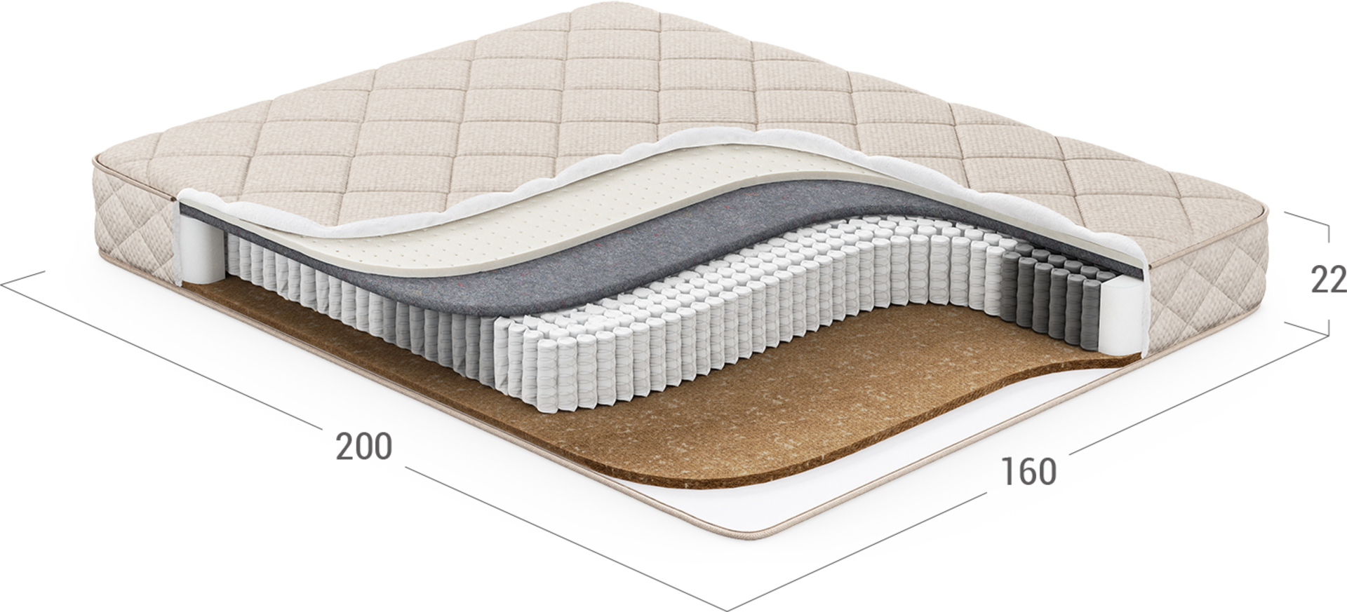 Надежно изолирует комфортные слои от соприкосновения с пружинным блоком и защищает материалы наполнения матраса от износа.