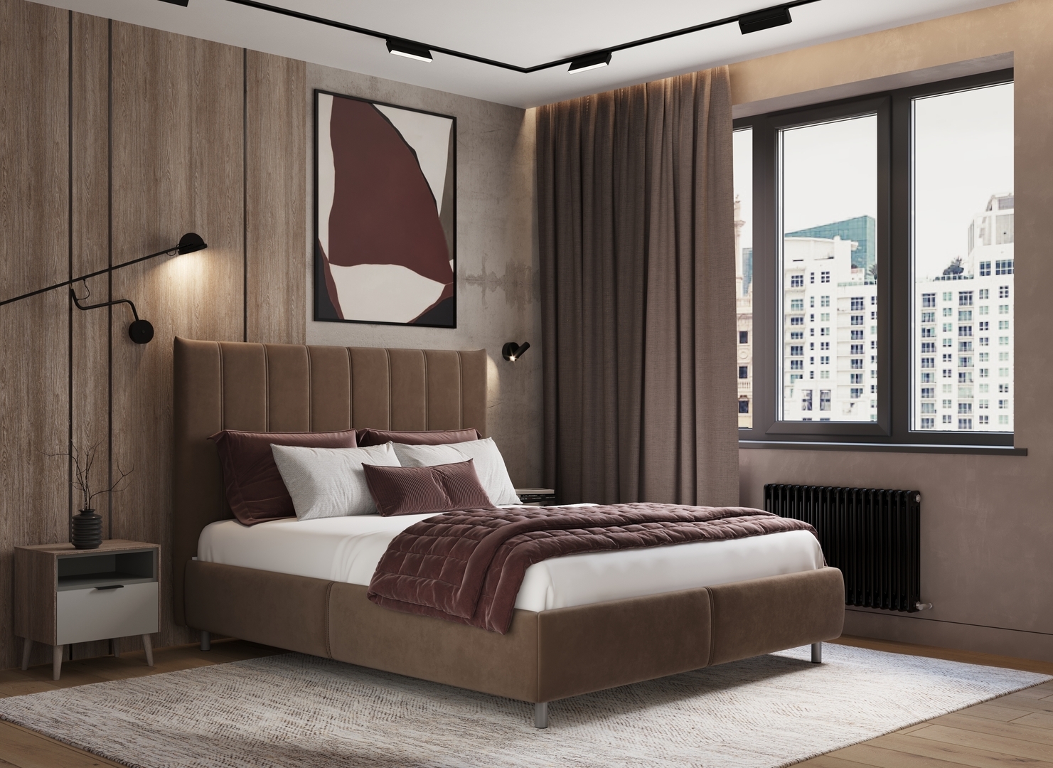 Изголовье кровати MOON 1161 смотрится дорого и стильно. Особенностью данной модели является изголовье, оформленное вертикальными полосами, которое не только придаёт кровати современный вид, но и визуально увеличивает пространство, добавляя в вашу спальню эффект высоты и лёгкости.