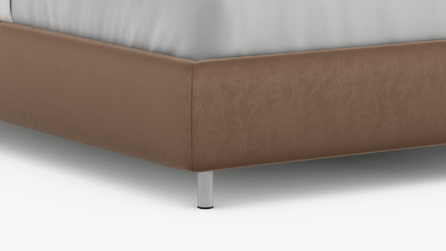 К кровати предлагается два варианта металлических опор на выбор — цилиндрической или фигурной формы. Фигурные опоры представлены с одним вариантом высоты 9 см, а цилиндрические опоры в двух вариантах — 9 см или 12 см на выбор.