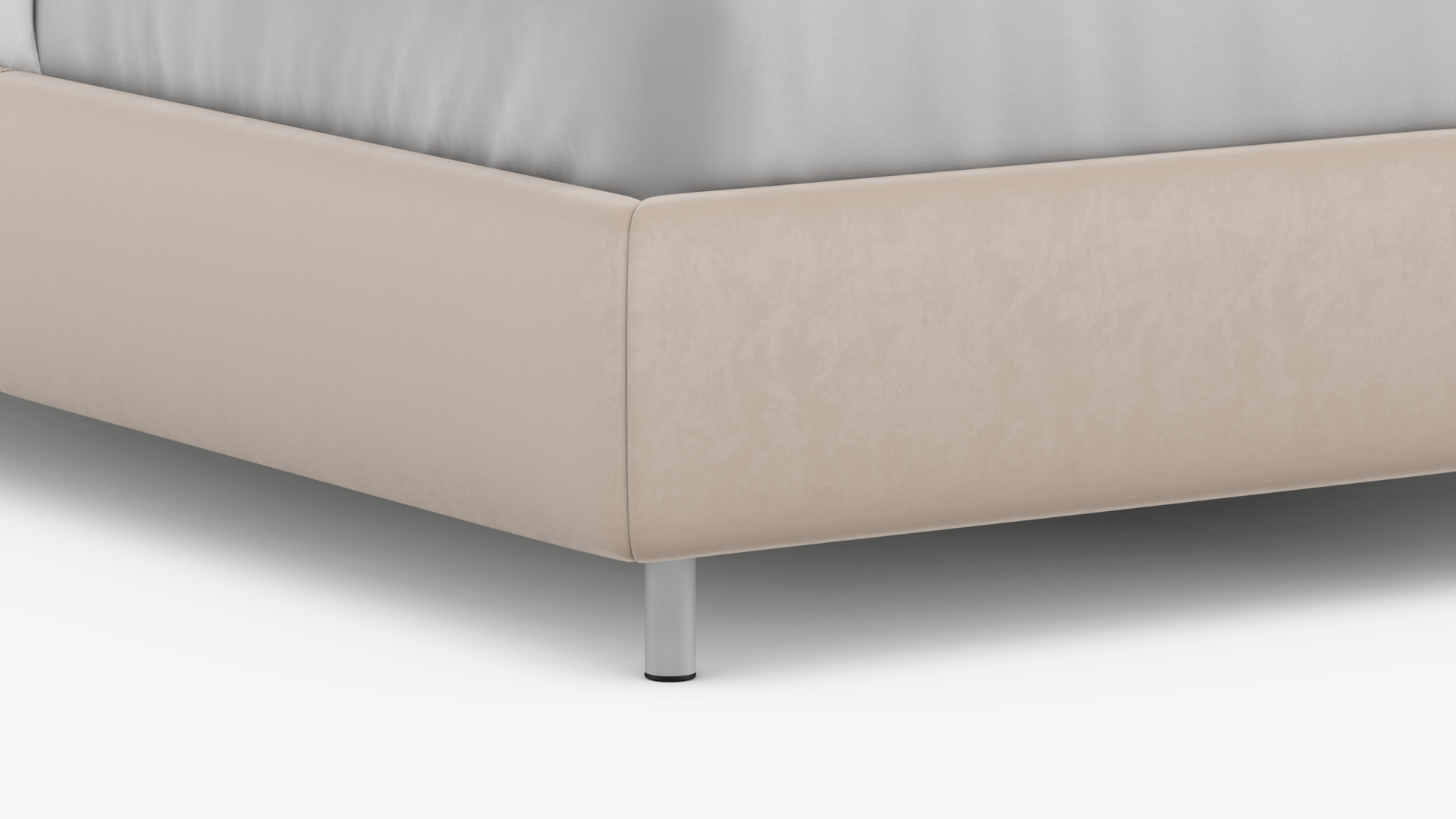 К кровати предлагается два варианта металлических опор на выбор — цилиндрической или фигурной формы. Фигурные опоры представлены с одним вариантом высоты 9 см, а цилиндрические опоры в двух вариантах — 9 см или 12 см на выбор.
