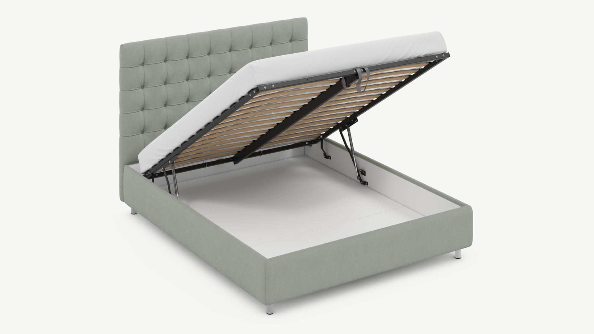 • Скрытая под основанием вместительная емкость без внутренних перегородок позволяет использовать всю площадь подкроватного пространства для хранения вещей.