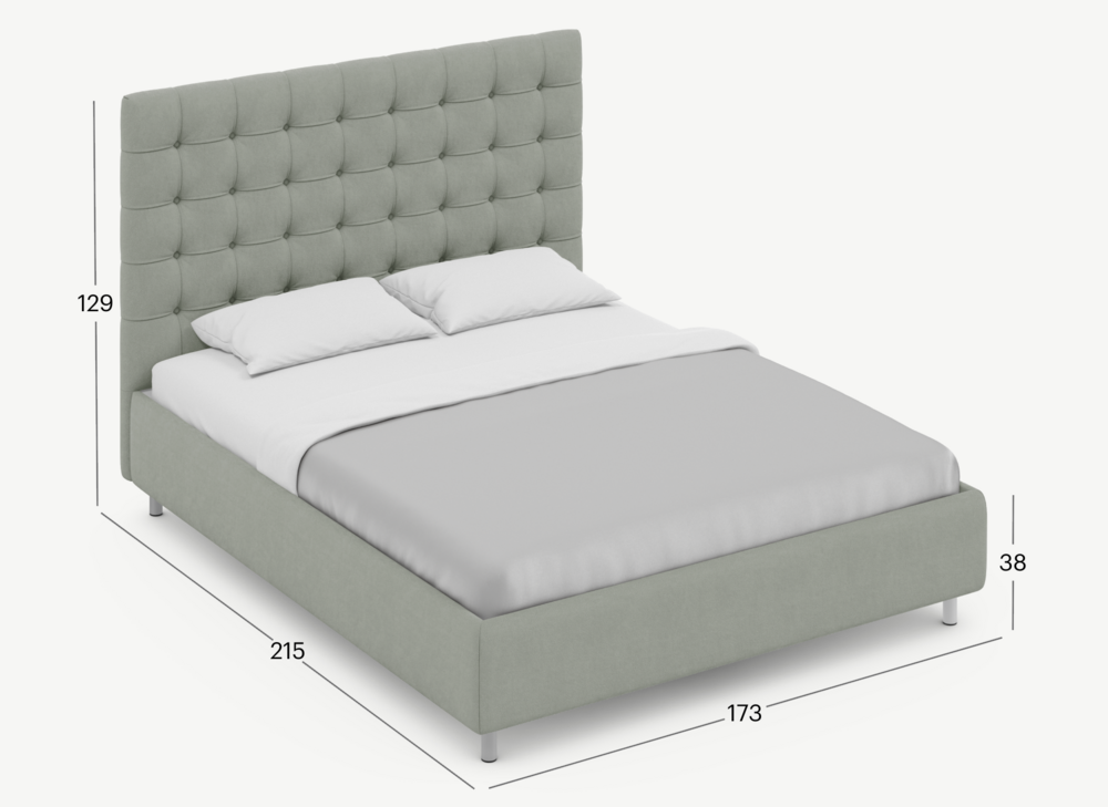 Изголовье подчеркивает эстетику MOON 1155, а также дарит дополнительный комфорт и уют спальному месту. Сформировать образ кровати и соблюсти желаемые пропорции помогут три варианта изголовья на выбор — высотой 105 см, 120 см или 130 см. Это позволит подобрать матрас любой желаемой высоты, а также эстетически сбалансировать вид спального места.