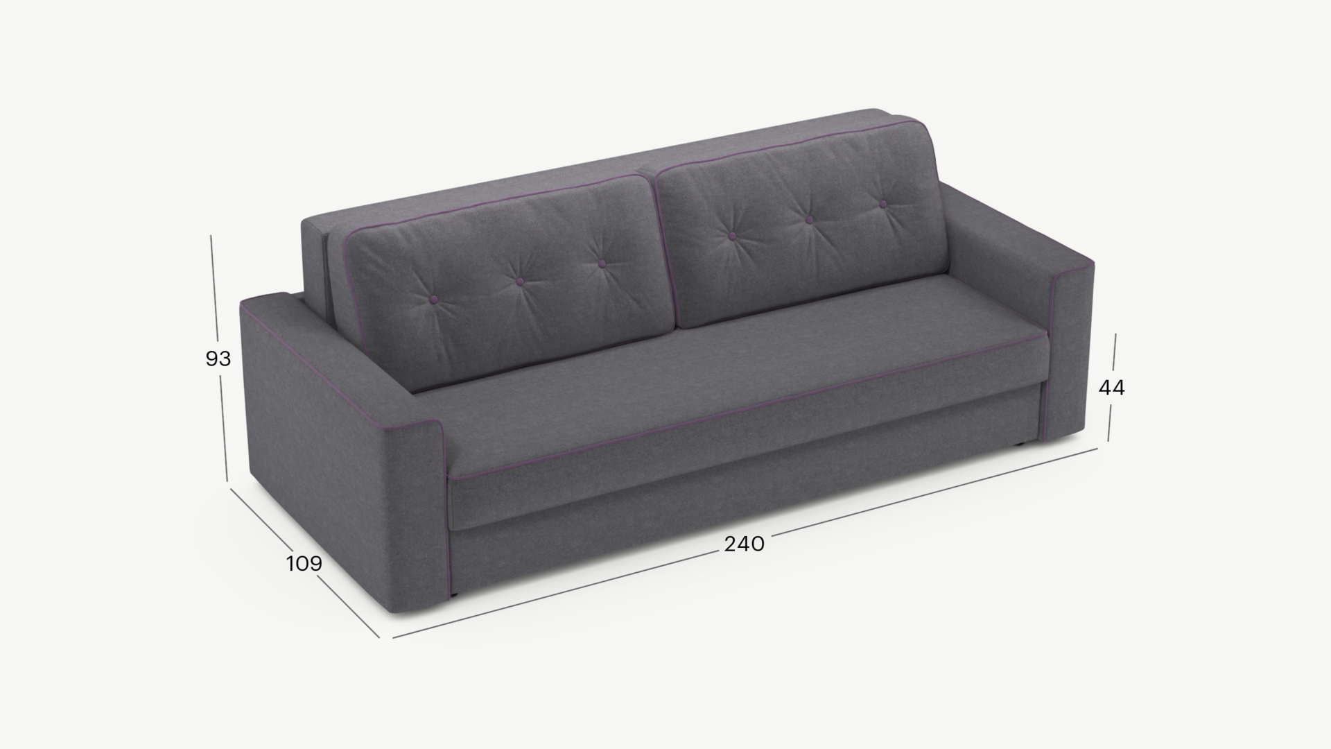 Технология сквозного пикования. Благодаря технологии ткань сохраняет свое натяжение весь период эксплуатации, минимизируется образование складок и заломов. Также обеспечивает объемность и поддерживает форму дивана в течение длительного времени.