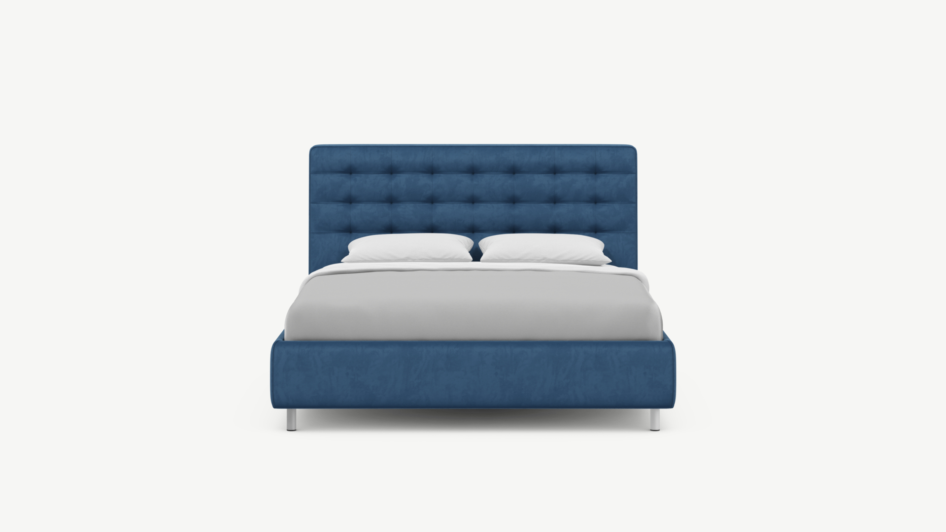 Оформите образ кровати, выбирая обивочный материал, который подчеркнет звучание Вашей спальни и отразит Ваш вкус. Обратите внимание на однотонный гладкий велюр, который усиливает объемную фактуру стежки.