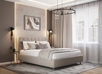 Оформите образ кровати, выбирая обивочный материал, который подчеркнет звучание Вашей спальни и отразит Ваш вкус. Обратите внимание на однотонный гладкий велюр, который усиливает объемную фактуру стежки.
