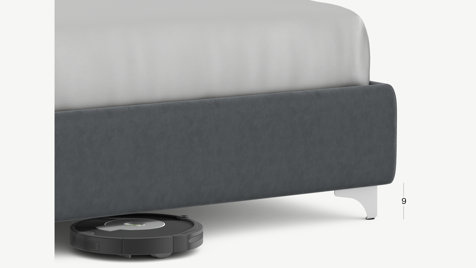 Высокие металлические опоры создают над полом достаточный просвет для движения робота-пылесоса, что помогает поддерживать чистоту и порядок в доме.
