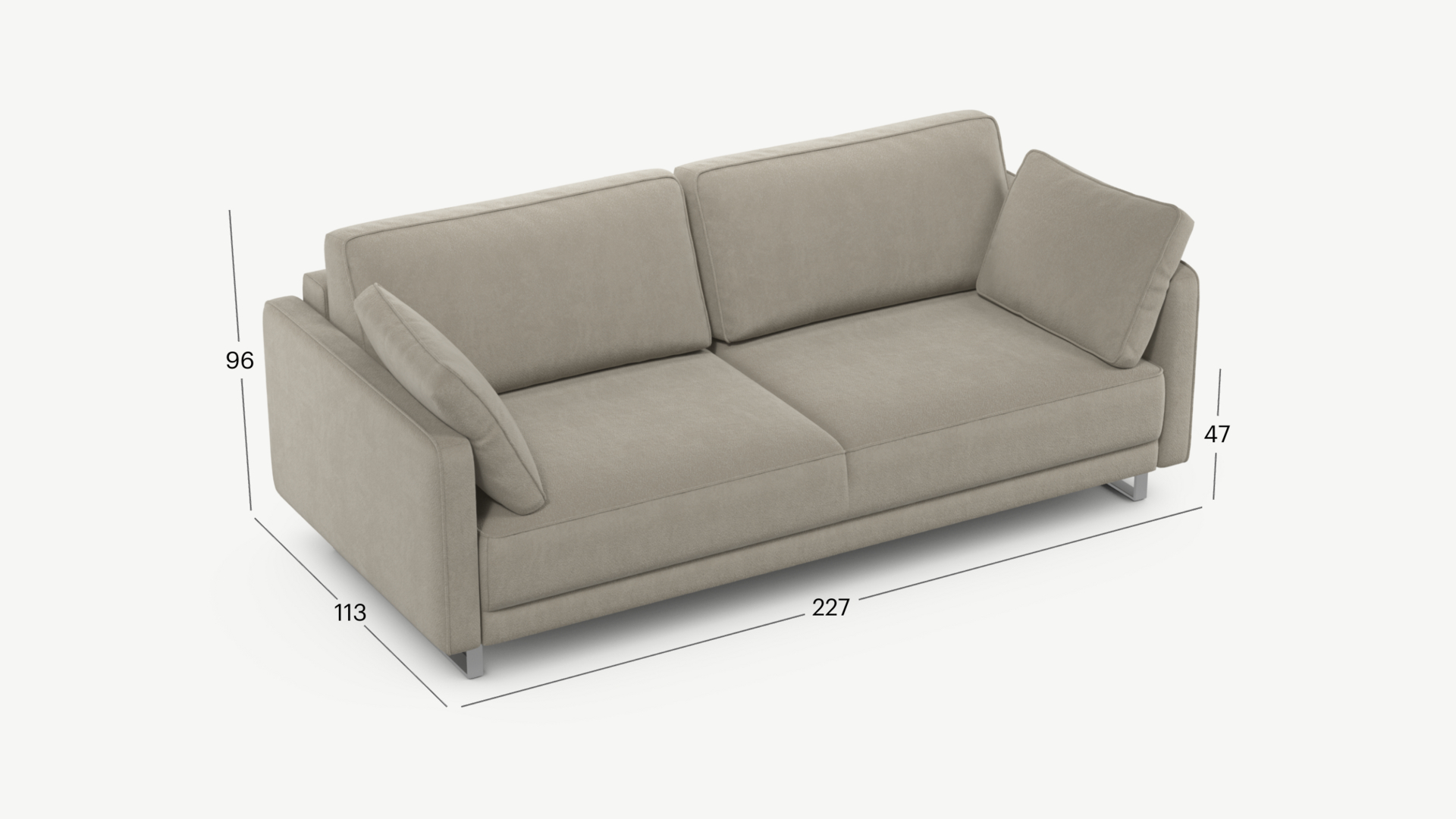 Механизм трансформации «Пантограф» подходит для ежедневного использования. Позволяет легко раскладывать и складывать диван, обеспечивая минимальный контакт дополнительных опор с напольным покрытием. Диван стоит на прямоугольных опорах, в то время как дополнительные остаются скрытыми, появляясь плавно и бесшумно в единственно нужный момент — при трансформации дивана в кровать.