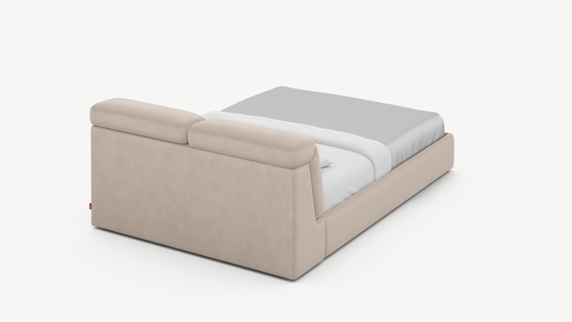 Изголовье подчеркивает эстетику MOON 1107, а также дарит дополнительный комфорт и уют спальному месту. Обратная сторона изголовья выполнена в мебельной ткани и позволяет ставить кровать в центре комнаты для зонирования пространства.