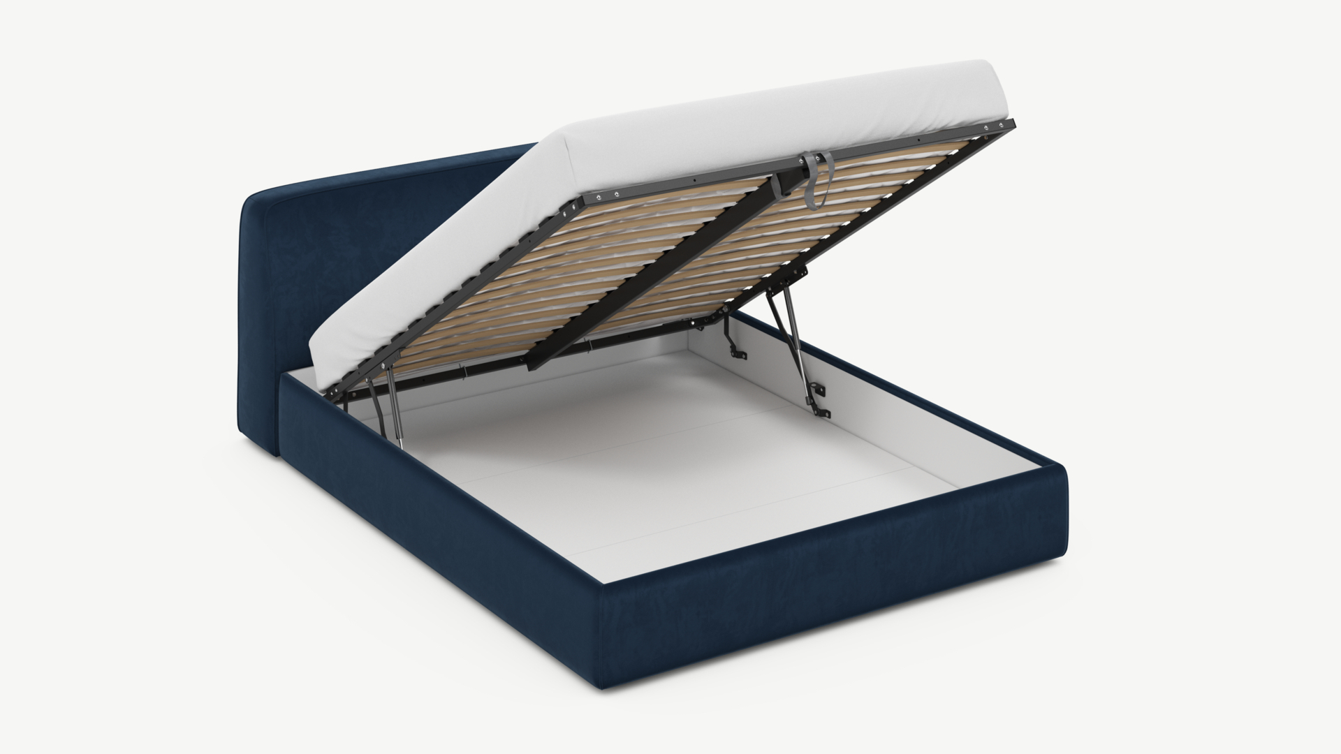 • Скрытая под основанием вместительная емкость без внутренних перегородок позволяет использовать всю площадь подкроватного пространства для хранения вещей.