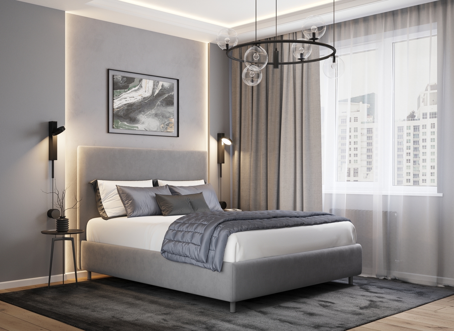 Творчески завершить образ спальни помогут дополнительные аксессуары: декоративные подушки, тумбы, банкетки, а также покрывала-саше.