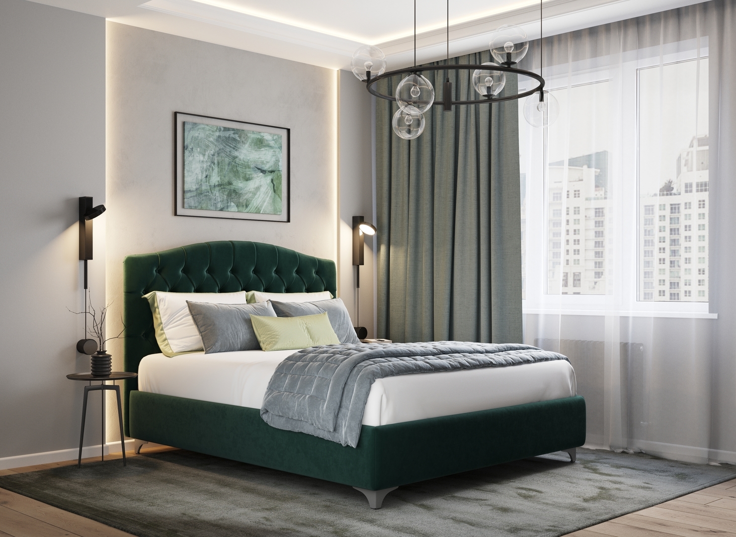 Кровать MOON 1157 способна создать в интерьере ощущение сказочного праздника. Изголовье с каретной стяжкой придаст торжественности всему пространству и добавит в него ноток дворцовой роскоши.