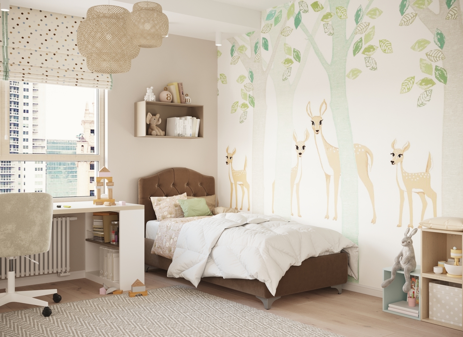Разнообразие цветовой палитры позволит подобрать желаемый оттенок обивочной ткани. Использование светлых цветов поддержит настроение стиля «Сканди». Приглушенные насыщенные оттенки оформят кровать в стиле «Лофт». Нейтральные оттенки в цвет интерьера обыграют спальню в Современном стиле.